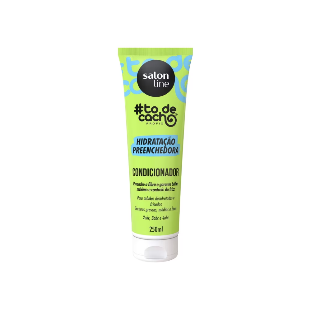 O Condicionador #todecacho Hidratação Preenchedora hidrata e preenche a fibra capilar, além de desembaraçar e selar os fios.