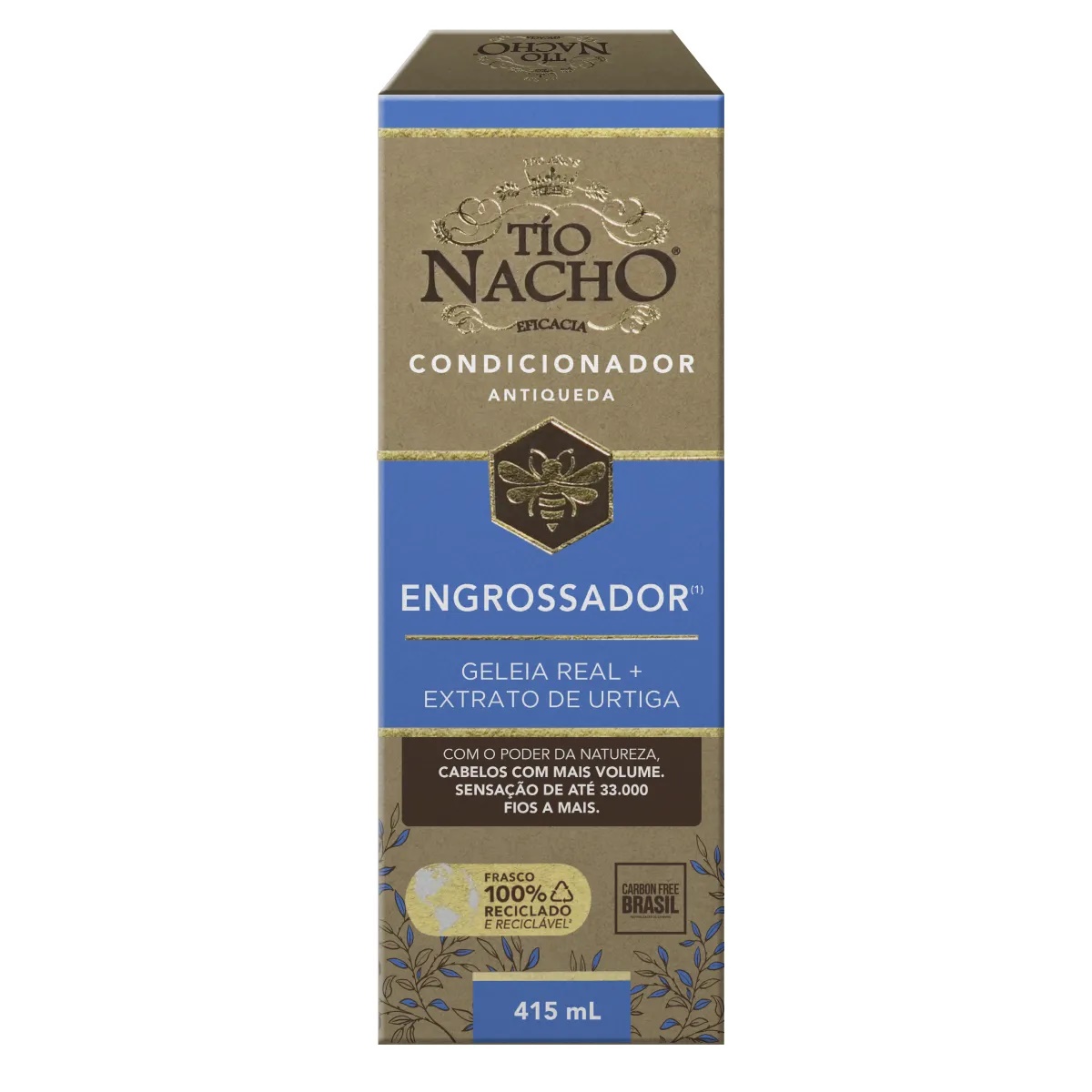 O Condicionador Tio Nacho Antiqueda Engrossador contém exclusiva combinação de geléia real com Capilgross e extratos de origem natural, que aumentam a espessura do fio e evitam a queda, proporcionando cabelo mais forte, volumoso e saudável.