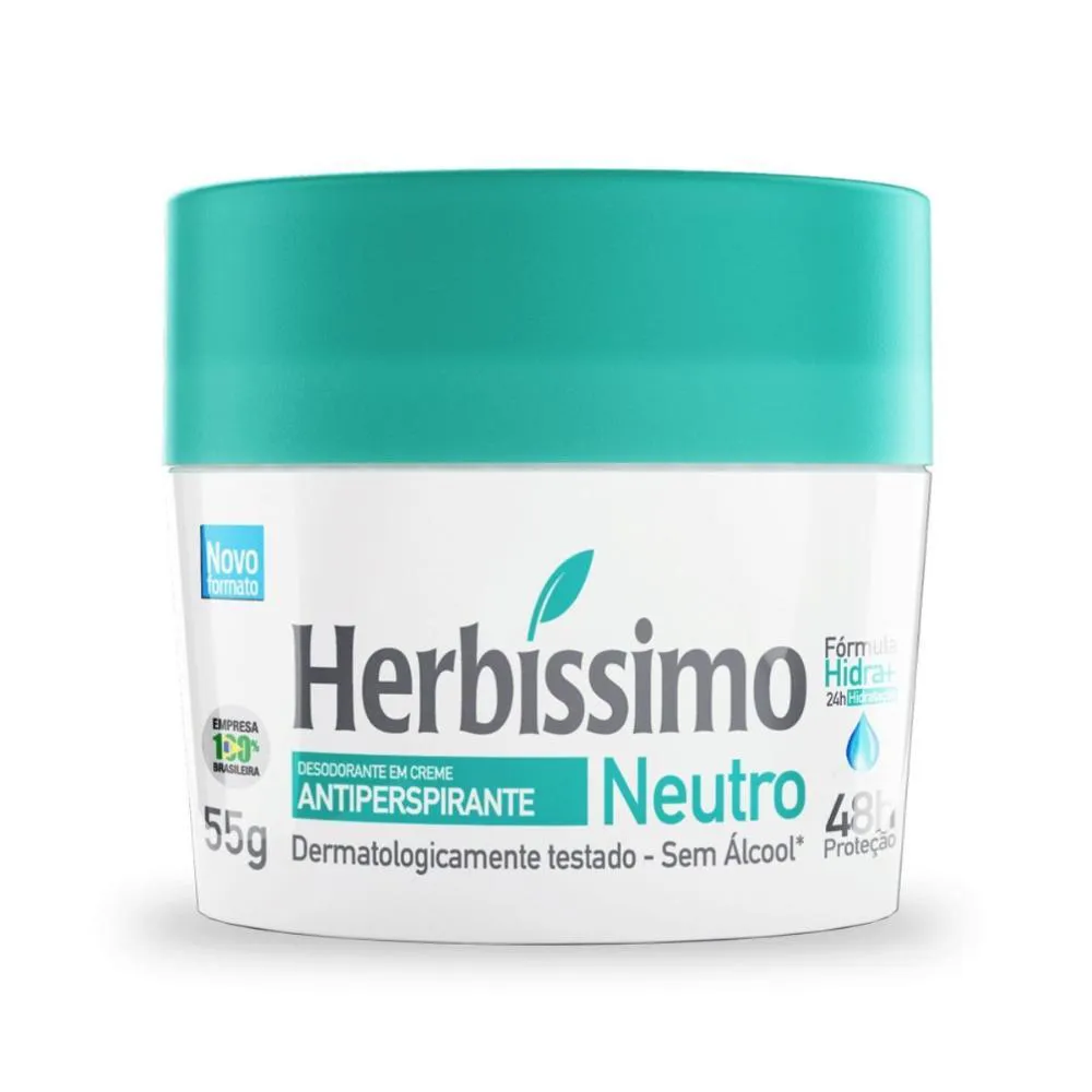 O Creme Desodorante Antiperspirante Neutro possui fórmula especialmente desenvolvida com glicerina vegetal e óleo de girassol, que promovem a hidratação das axilas por até 24 horas.