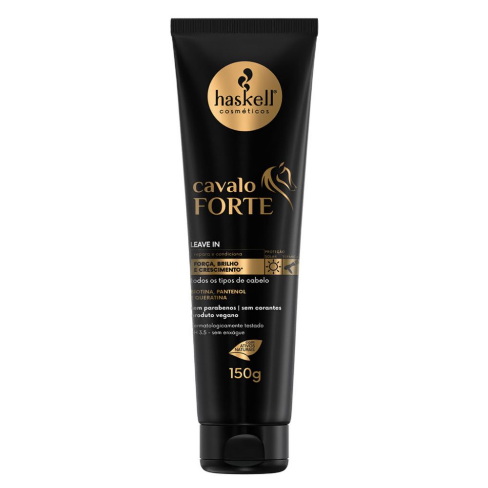 Modo de usar: nos cabelos limpos e úmidos, aplique uma quantidade suficiente do leave in na palma das mãos. Espalhe uniformemente pela extensão dos fios. Finalize como desejar. Sem enxágue. Potencialize os resultados utilizando toda a linha Cavalo Forte.
