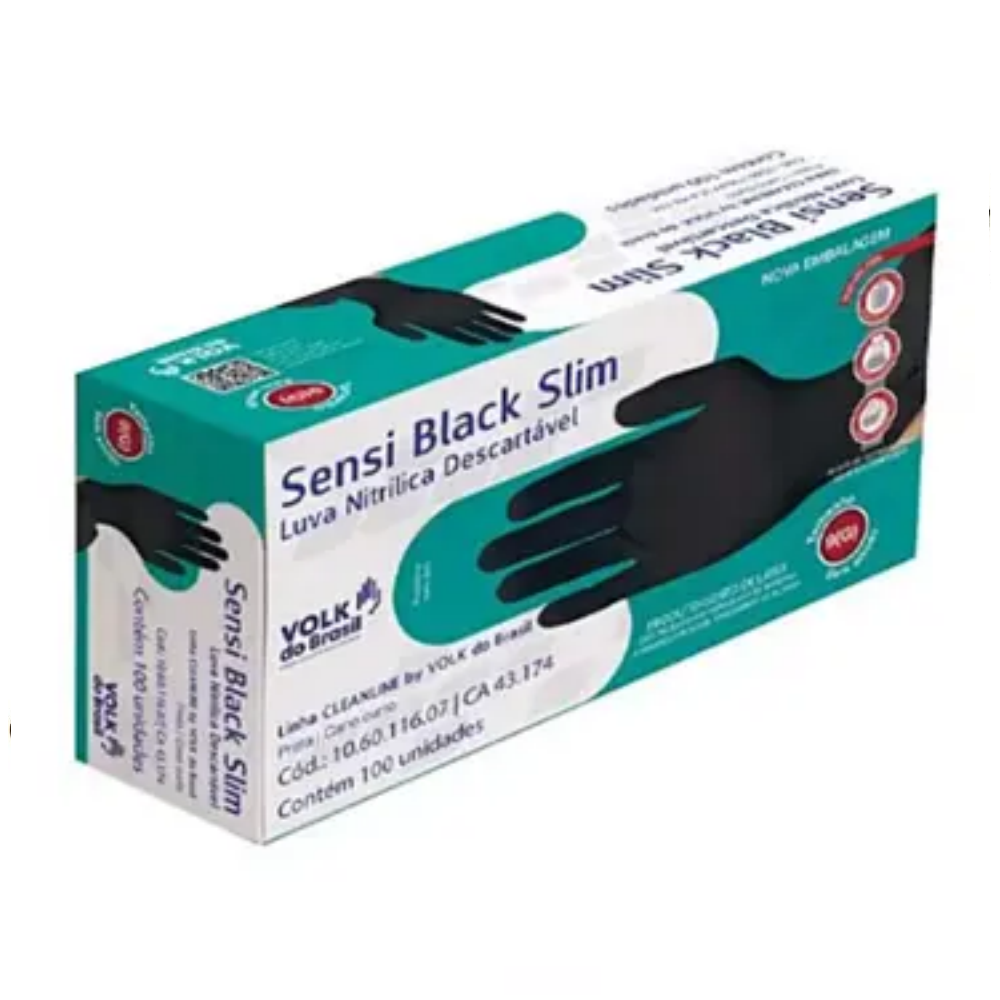 Volk do Brasil Luva Nitrílica Descartável Sensi Black Slim 100 Unidades - G