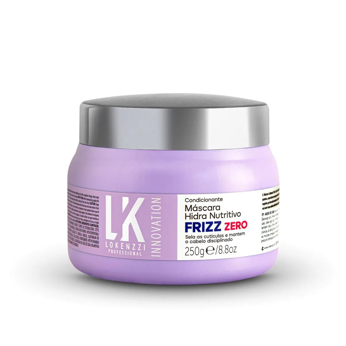 A linha Lokenzzi Frizz Zero foi desenvolvida especialmente para cabelos que sofreram danos por processos químicos como luzes, progressiva e coloração. Esses agentes fazem com que o fio do cabelo fique mais rebelde e com a carga negativa, formando assim o frizz. Para isso a Lokenzzi desenvolveu a linha Frizz Zero que além de hidratar vai nutrir seus cabelos diminuindo a carga negativa. Para melhores resultados use a linha completa Frizz Zero.