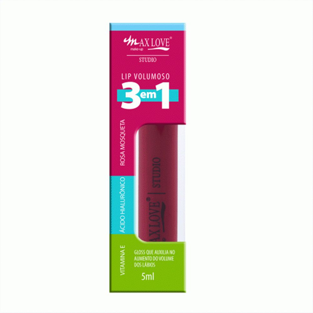 O Gloss Lip Volumoso 3 em 1 Max Love proporciona brilho e hidratação aos lábios. Sua fórmula combina os benefícios do Extrato de Rosa Mosqueta, Ácido Hialurônico e Vitamina E que hidratam e protegem a pele. Seu uso contínuo auxilia no aumento do volume dos lábios. Fórmula vegana e livre de parabenos.