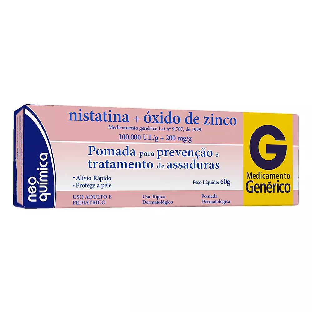 Nistatina + óxido de zinco tem como indicação principal proteção e tratamentos das assaduras infantis (dermatite amoniacal “dermatite das fraldas”). Outras indicações, são os intertrigos (mamário, perianal, interdigital, axilar), as paroníqueas por Monília.