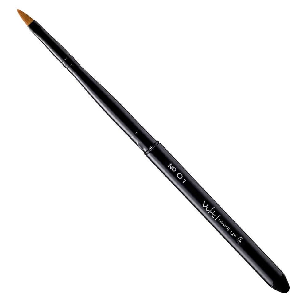 As cerdas sintéticas em formato afinado do Pincel para Lábios da Vult permitem a definição e preenchimento perfeito dos lábios, seja na aplicação de gloss ou batom."