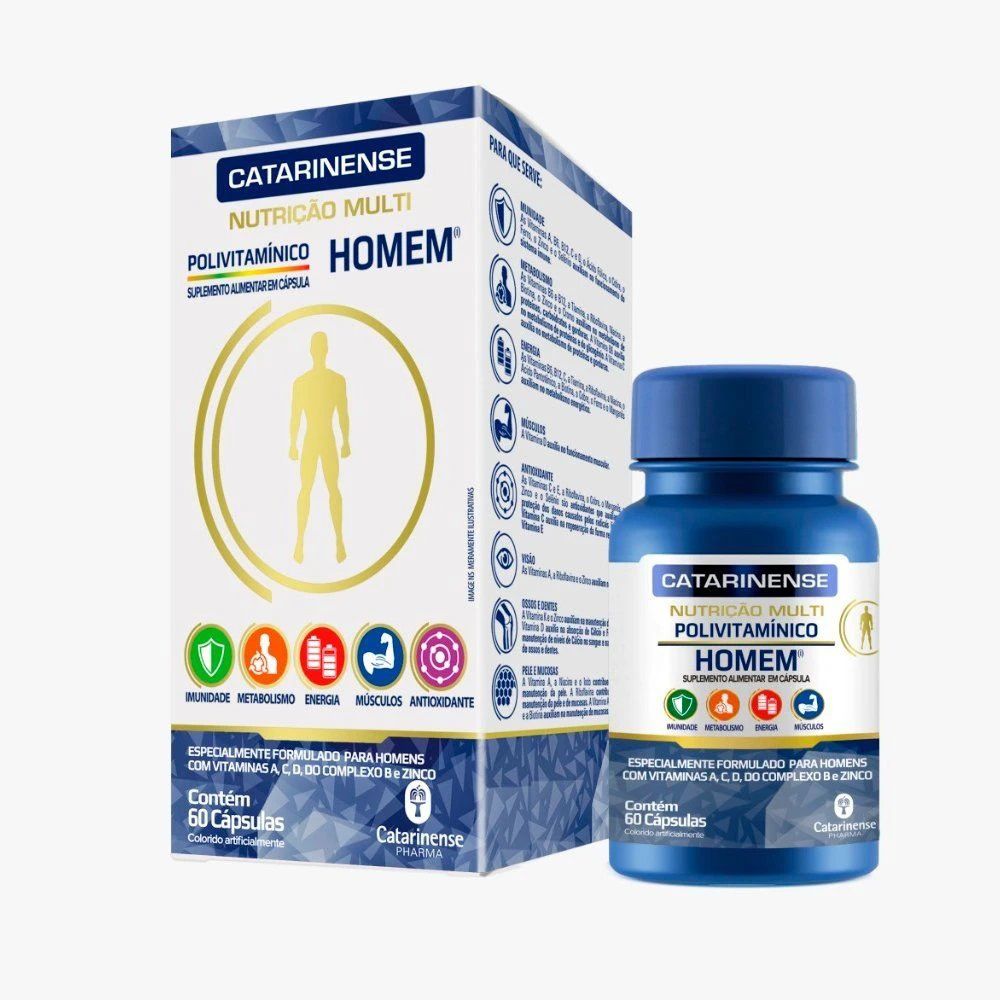 Polivitamínico A-Z Homem possui uma combinação equilibrada de vitaminas e minerais para o organismo masculino. Seu consumo auxilia no metabolismo energético, aumentando a disposição, fortalecem o sistema imunológico e fortalecem ossos e dentes. Ele também funciona com um antioxidante, protegendo contra os danos causados pelos radicais livres, e auxilia na melhoria natural da visão. Além disso, por possuir biotina e zinco, o polivitamínico fortalece os cabelos e as unhas.