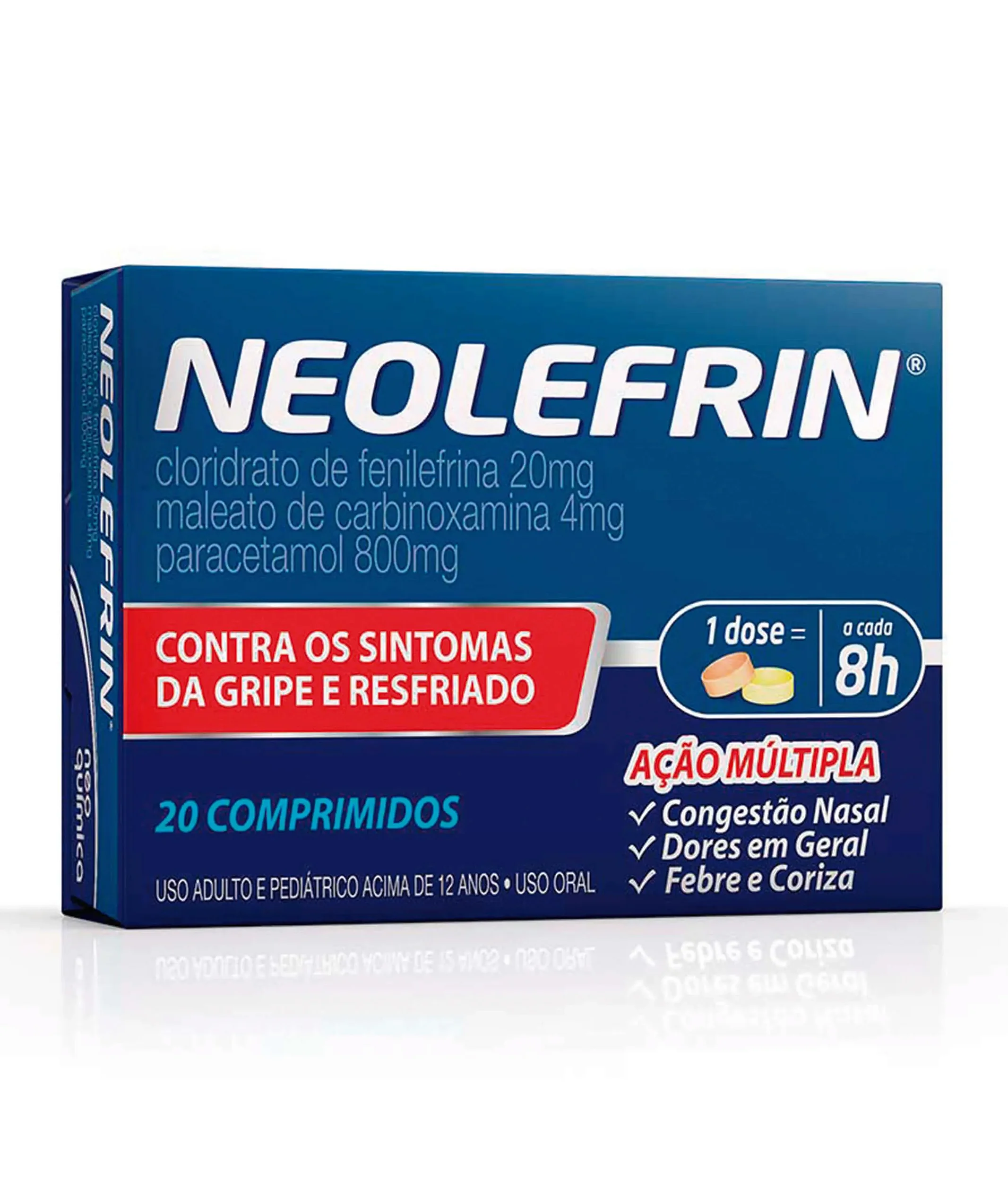 A Neolefrin Com 20 Comprimidos é um medicamento utilizado para aliviar e tratar os sintomas das gripes e resfriados. Os sintomas podem incluir dor, febre, congestão nasal e coriza. É composto pelo paracetamol e pelo cloridrato de fenilefrina.