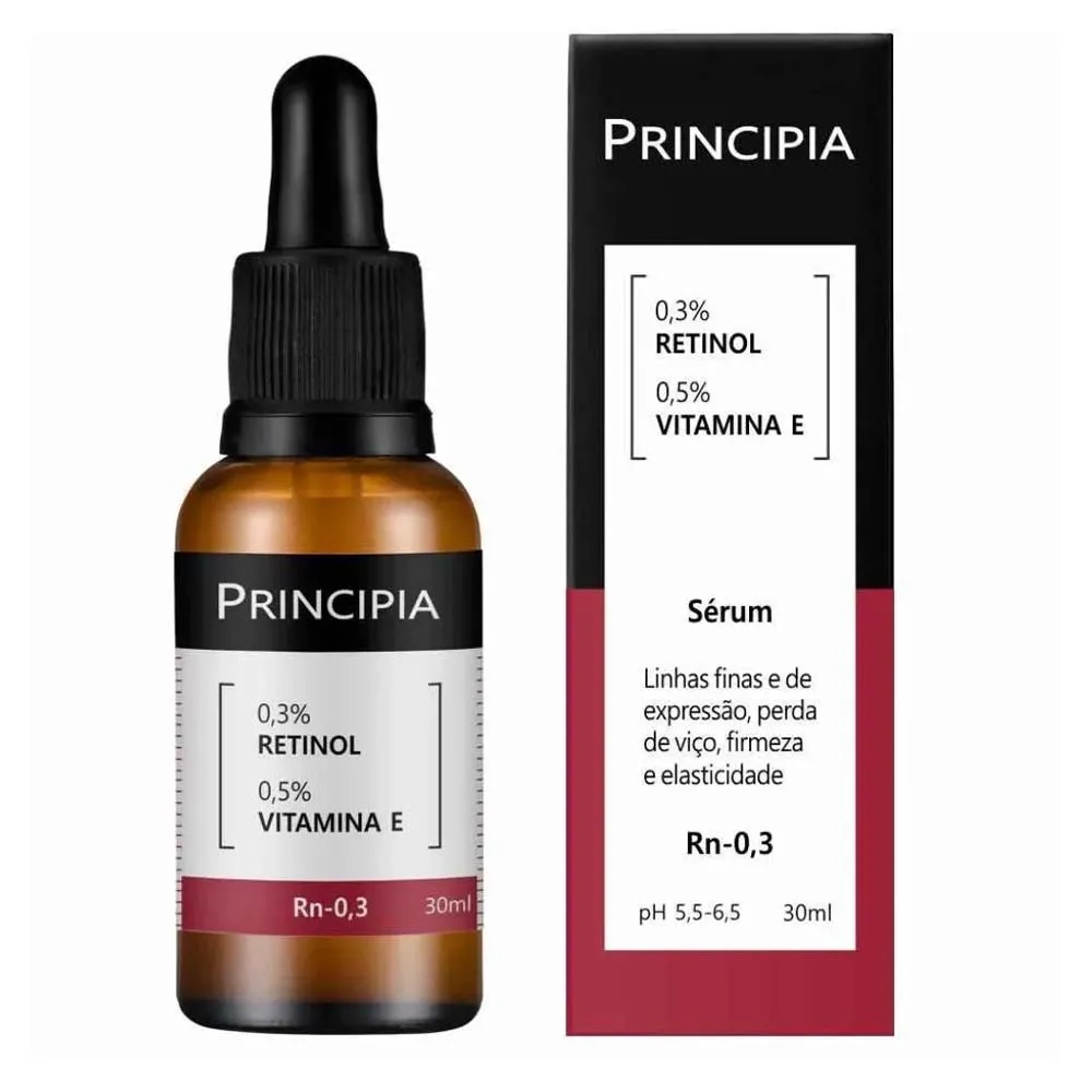 O Sérum Facial Principia Rn-0,3 contém 0,3% de Retinol e 0,5% de Vitamina E, oferecendo uma abordagem completa para combater os sinais de envelhecimento. Com essa formulação avançada, o produto é altamente eficaz na restauração da pele, tratando olheiras, flacidez e recuperando o viço.