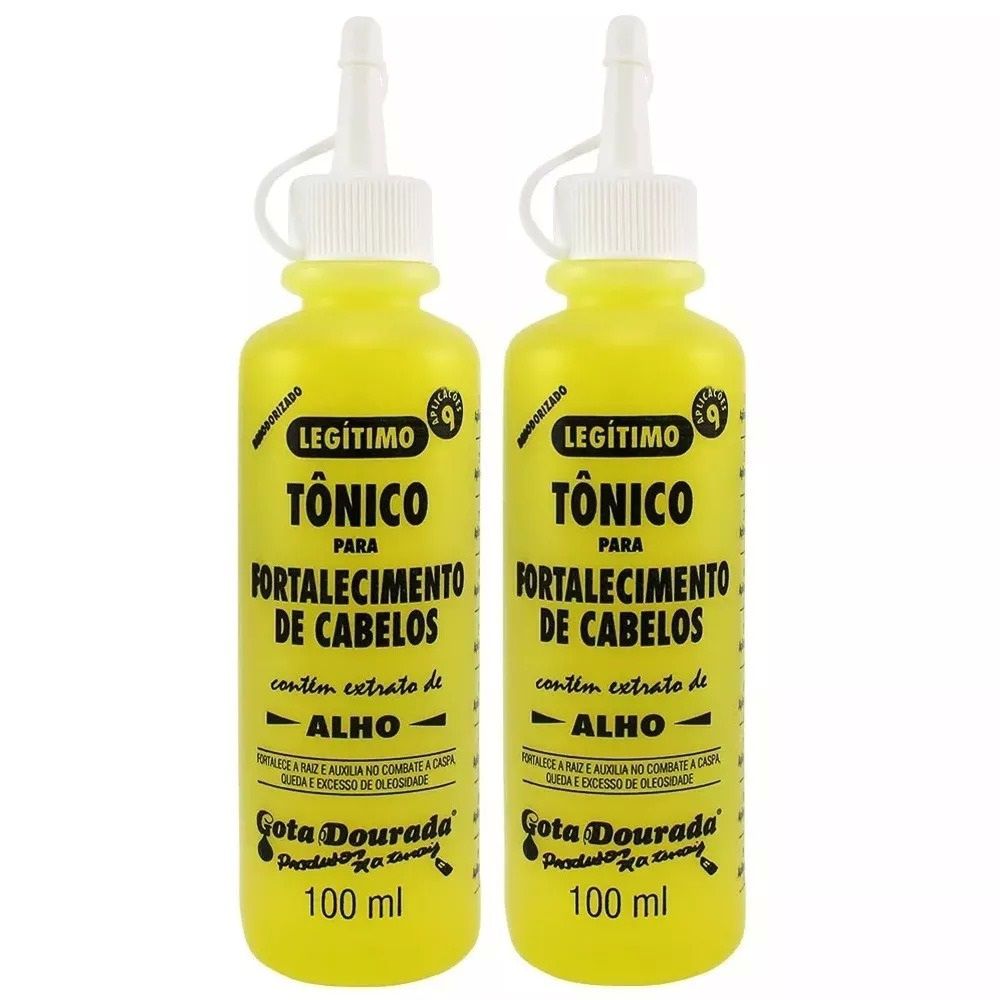 O Tônico Capilar Gota Dourada 100ml possui na sua composição extrato de Alho, extrato de Aloé Vera e extrato de Calêndula.