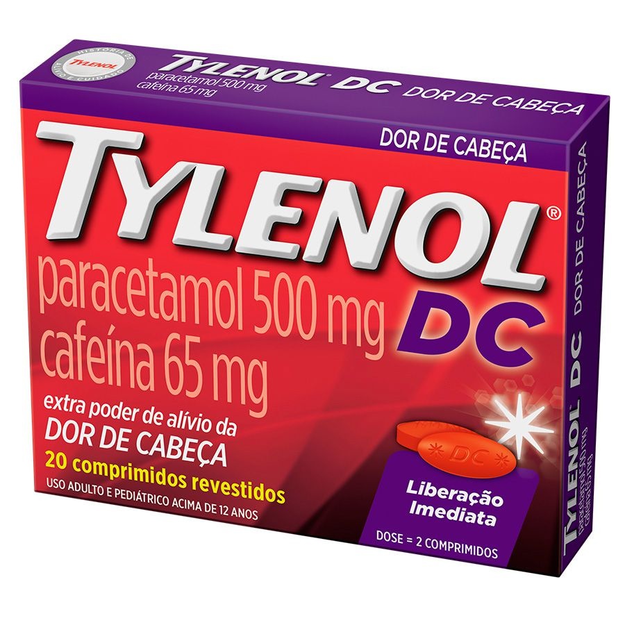 Cada comprimido de TYLENOL® DC (Dor de Cabeça) é composto por 500mg de paracetamol e 65mg de cafeína. É indicado para alívio sintomático das dores de cabeça (bula).