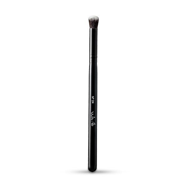 Cerdas mistas e macias, em formato arredondado, perfeito para utilização com produtos cremosos, líquidos ou em pó em pequenas áreas do rosto, como a região dos olhos.
